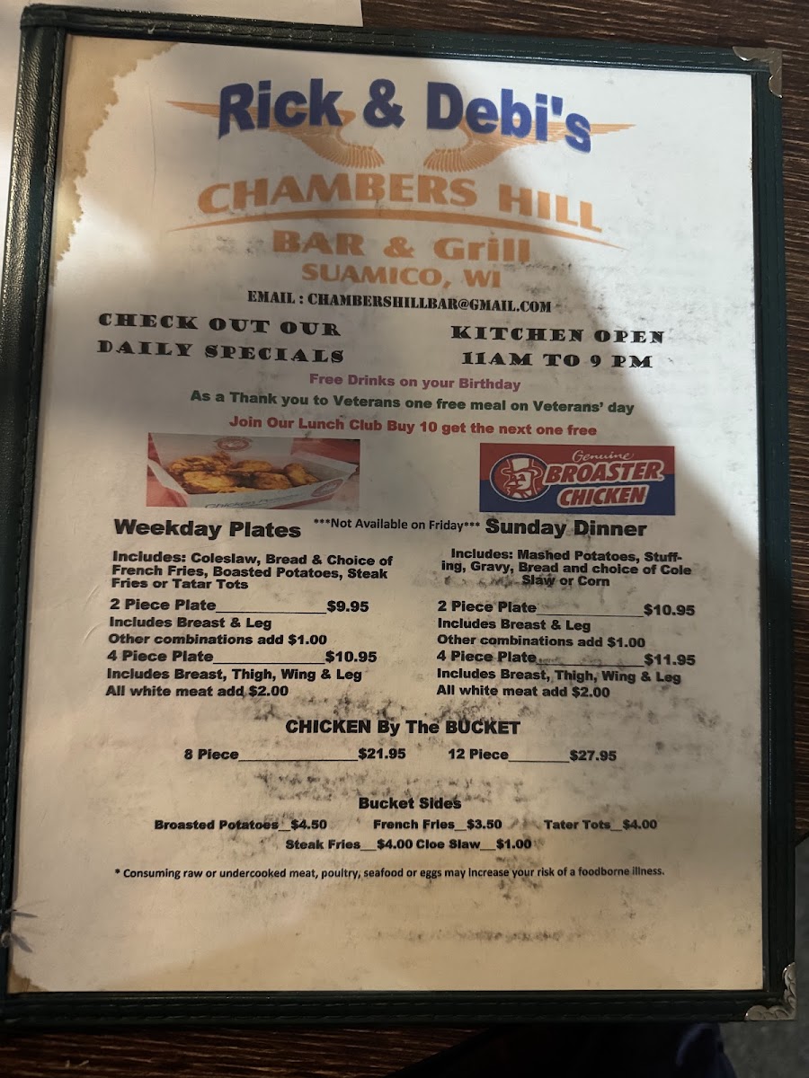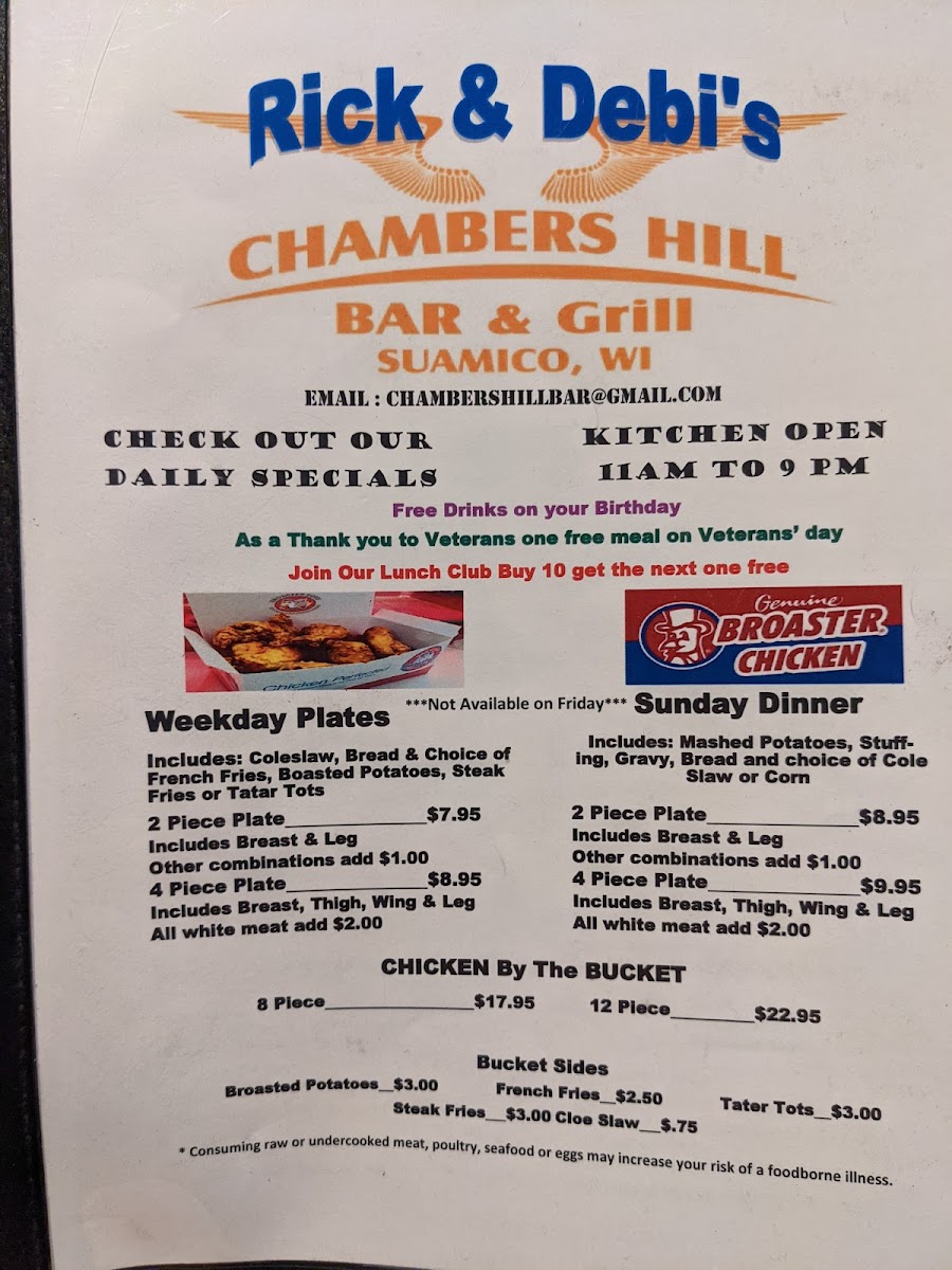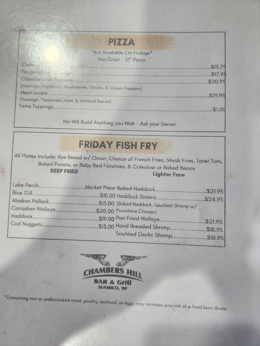 Chambers Hill Menu